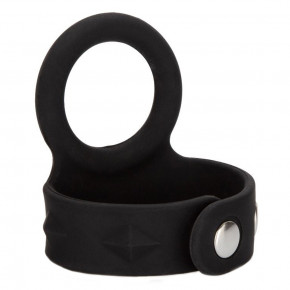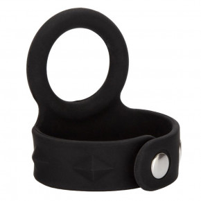 De Tri-Snap Scrotum Support Ring Cockring Large is een verstelbare cockring in de kleur zwart.