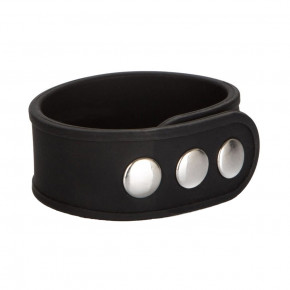De Tri-Snap Scrotum Support Cockring Medium is een verstelbare cockring in de kleur zwart.