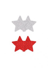 De Pretty Pasties Glitter Ster Rood/Zilver zijn tepel accessoires in de kleur rood/zilver in de vorm van een ster.