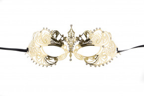 Masq Harlot is een masker in de kleur goud afgewerkt met witte strass steentjes. Het is voorzien van een goudkleurig lint waarmee je het aan de achterkant kunt dichtknopen. Voor welke gelegenheid ga jij het dragen?