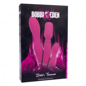 De Bobbi's Threesome is een Vibrator Cadeauset bestaande uit drie verschillende top vibrators. Alle drie de vibrators verwennen je op hun eigen unieke manier. De vibraties zijn traploos te verstellen door middel van een draaiknop aan de onderkant, bij alle drie de vibrators en ze zijn ook alle drie afgewerkt met fonkelende strass steentjes voor een luxe effect.