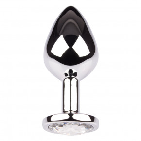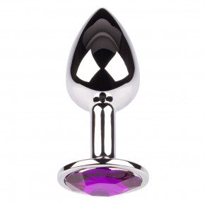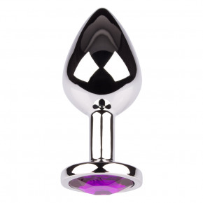 De Plug It Strass Medium is een buttplug gemaakt van glanzend zilver metaal en afgewerkt met een paarse strass steen. Hij heeft een conische vorm en is van medium formaat.