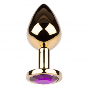 De Plug It Strass Small is een buttplug die is gemaakt van een glanzend goudkleurig metaal en afgewerkt is met een paarse strass steen. Hij is van klein formaat, zowel geschikt voor beginners als voor de gevorderde anaal genieter die liever een kleine plug heeft.