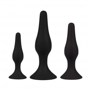 De Plug It Silicone Buttplug Anker Set is een set van drie verschillende formaten buttpluggen in de kleur zwart. Ze hebben een anker vorm en zijn gemaakt van siliconen materiaal. De set bestaat uit extra small, small en medium, een ideale beginnersset dus!