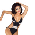In deze spannende body ben jij een lust voor het oog, en de nadruk ligt op precies de juiste punten. Hij is gemaakt van een zwart glanzende stof afgewerkt met wit kant.