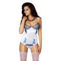 Deze pikante babydoll is gelijktijdig ook nog eens super romantisch. Hij laat al je vrouwelijke rondingen perfect uitkomen doordat hij lekker strak om je lichaam aansluit. Hij is gemaakt van een witte satijn look stof afgewerkt met een donker blauwe zachte kant.
