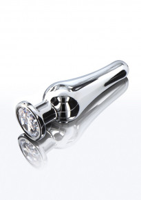 De Plug It Strass Medium is een buttplug gemaakt van glanzend zilver metaal en afgewerkt met een paarse strass steen. Hij heeft een conische vorm en is van medium formaat.