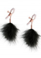 De Tweezers With Feathers zjn tepelklemmen in de kleur goud met rode veren.